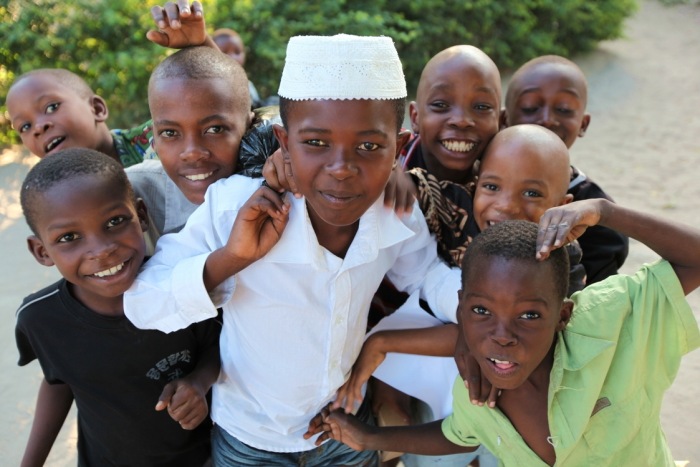 Local children greet mobile clinic staff in Temeke District of Dar es Salaam, Tanzania. [Photo credit Ben Truscello]